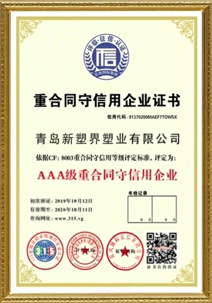 QUALITY & CREDIT CERTIFIED CERTIFICATE