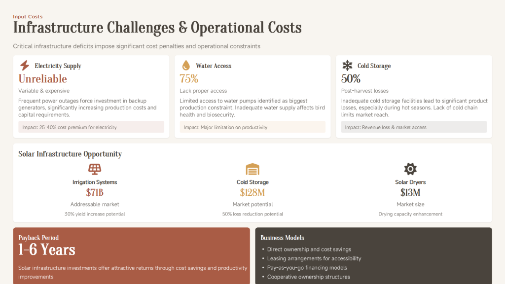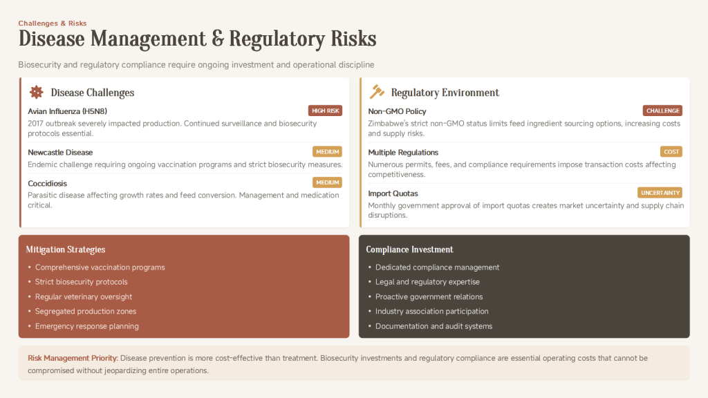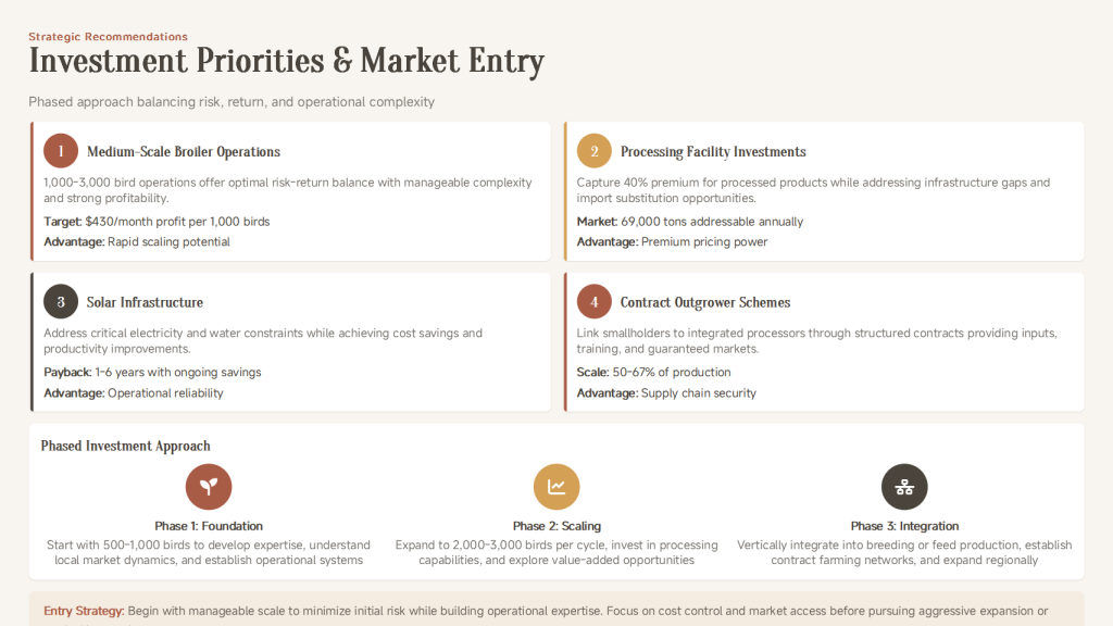 | Policy & Market Risks | Potentially complex procedures; highly concentrated poultry market. Mitigation: Partner with local professional institutions to ensure compliance; adopt differentiated or value-chain synergy strategies for market entry. |