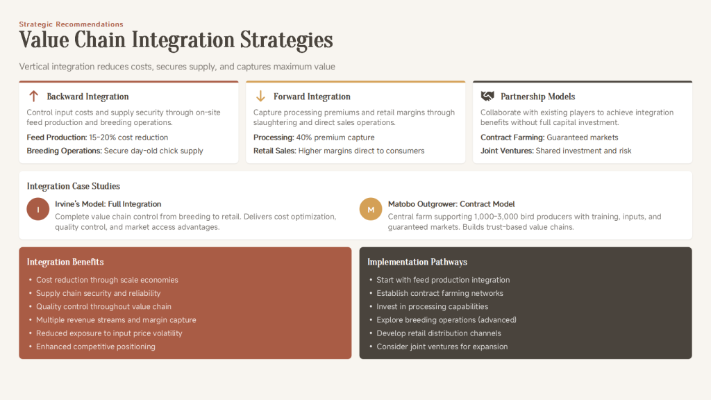 - Differentiated Entry for Poultry Industry: Avoid head-on competition with existing giants. Options include: Becoming a specialized feed supplier; partnering with large enterprises or retailers for contract farming; investing in efficient slaughter/processing plants in specific regions to provide toll processing services.