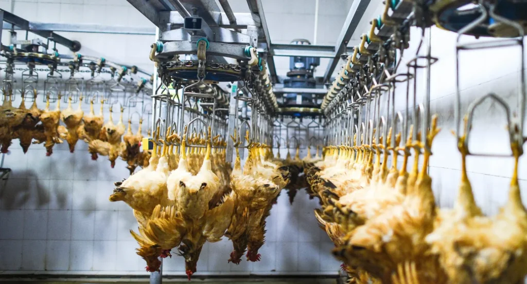 الهدف الرئيسي من هذه الخطوة هو دمج الطيور بسلاسة في خط الذبح الآلي للغاية. يعد التعليق المستقر والموجه بشكل صحيح أمرًا بالغ الأهمية لدقة خطوات الصعق والذبح والمعالجة اللاحقة. المتطلب التشغيلي الأكثر أهمية هنا هو “الرفق”. أي معاملة خشنة يمكن أن تسبب الذعر والصراع لدى الطيور، مما يتعارض مع مبادئ رعاية الحيوان وقد يؤدي إلى إصابات جسدية مثل كسور الأجنحة أو خلع المفاصل، مما يؤثر مباشرة على سلامة الذبيحة وقيمتها التجارية.