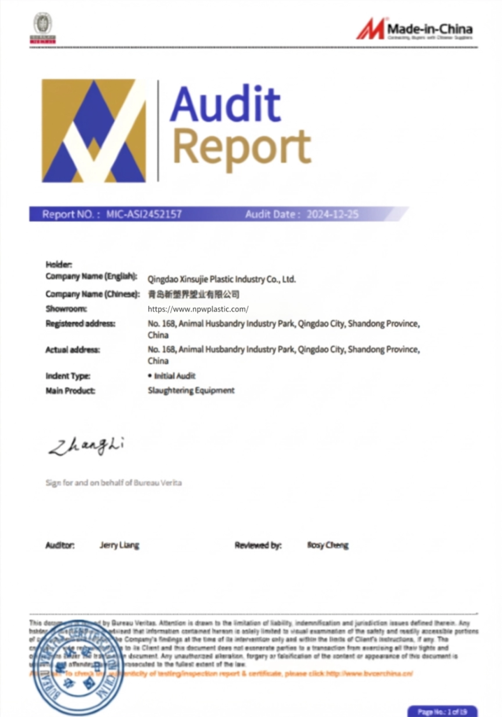 تقع شركة QINGDAO NPW PLASTIC CO., LTD في مدينة تشينغداو بمقاطعة شاندونغ. منذ عام 2009، ونحن نركز على إنتاج معدات الذبح والمجموعات الكاملة من معدات تجهيز الأغذية، ونمتلك فريقاً رفيع المستوى يجمع بين البحث والتطوير، والتصميم، والتصنيع، والمبيعات، والتركيب، وخدمة ما بعد البيع. وبفضل الإدارة السليمة والخبرة الغنية، تضمن الشركة أن تكون معداتها موثوقة الوظائف، وشاملة الخدمات، وذات أداء عالٍ مقابل التكلفة.