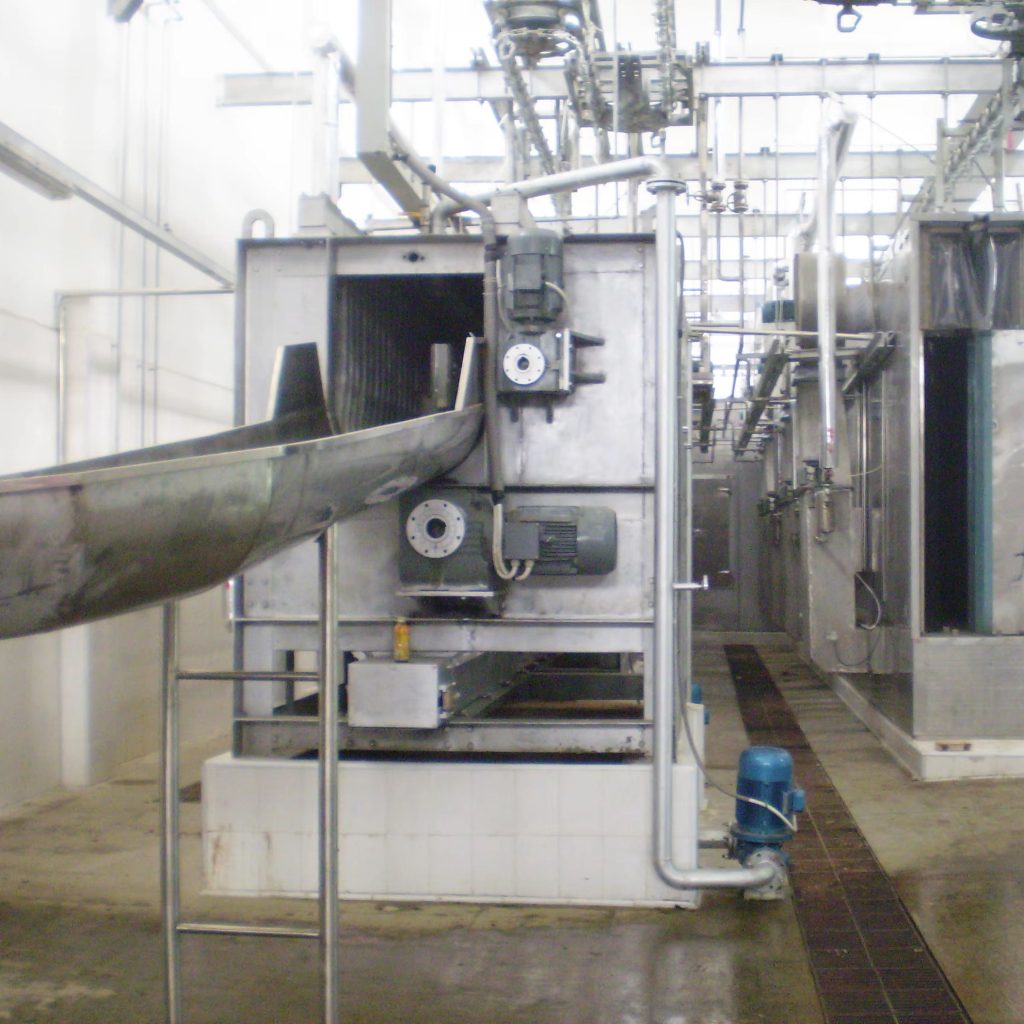 The spiral design allows for gentle yet thorough handling, making it particularly suitable for the high-volume, batch production requirements of medium and large-scale slaughtering lines.
