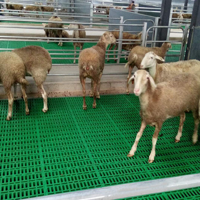Los suelos ranurados son indispensables en las granjas de ovejas a gran escala donde la eficiencia en la eliminación del estiércol y la reducción de costes laborales son críticas. Por ejemplo, en establos de varios pisos con sistemas automáticos de raspado de desechos, los paneles ranurados de plástico con huecos de 1,3–1,5 cm (Figura 1) permiten un drenaje rápido del estiércol al tiempo que evitan el atrapamiento de las pezuñas.