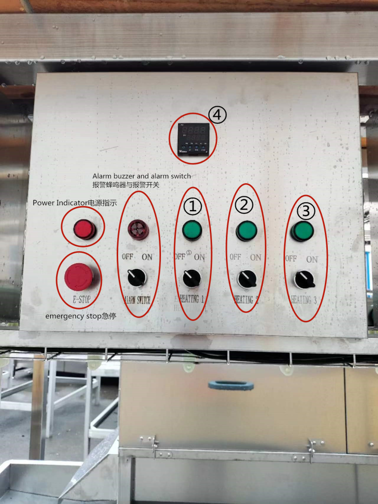 2.2. Presione el botón del ventilador de la máquina de escaldado para encenderlo.