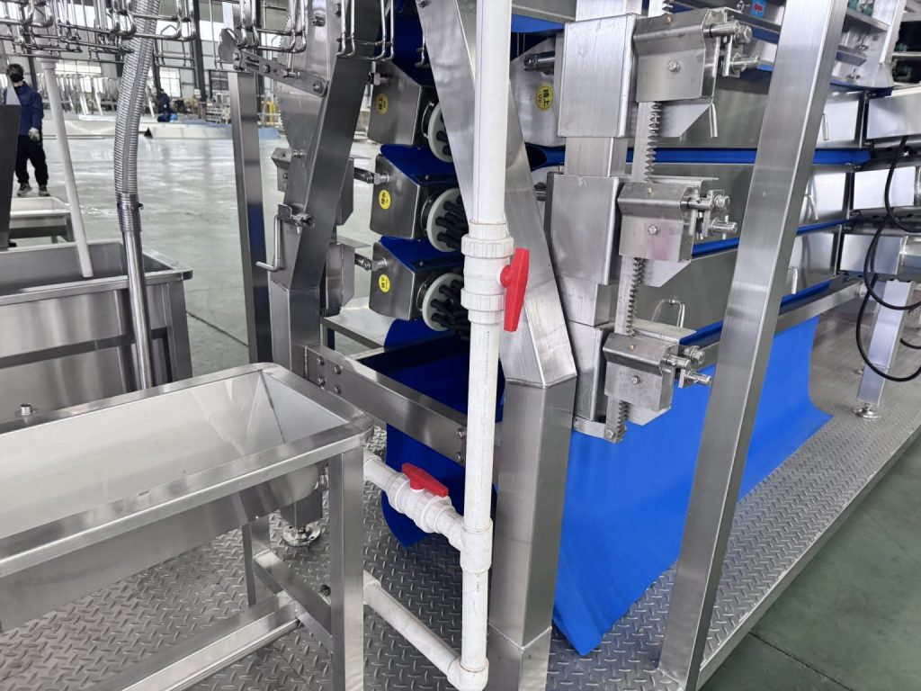 La flexibilité de la conception ajustable : le châssis complet de la plumeuse verticale configuré pour la ligne d’abattage compacte NPW peut être réglé librement. Pour des poulets pesant de 1,8 kg à 3,5 kg, un effet de plumage propre peut être obtenu en ajustant l’espacement.