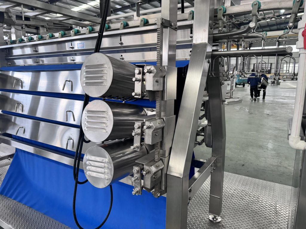 Lien avec le processus précédent : Soulignez que le processus d’échaudage (température d’échaudage : 52-61°C, durée : 90 secondes) a un impact décisif sur l’efficacité du plumage. Un échaudage insuffisant ou excessif affectera l’élimination des plumes.