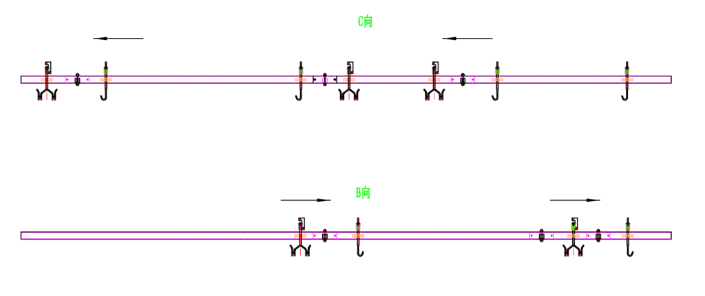 Before key cutting stations, a precision mechanical guide rail system is installed. When a hook carrying a carcass arrives at the designated position, a special interface between the guide rail and the hook automatically triggers a 90-degree rotation. This mechanism precisely reorients the carcass in space, ensuring the cutting surfaces of each part face the corresponding tool head-on, significantly improving cutting accuracy, product consistency, and overall yield, while effectively reducing waste.