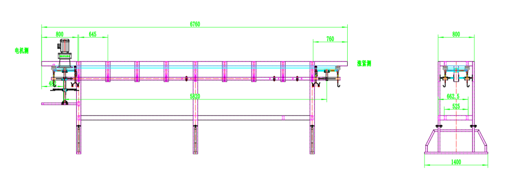 The equipment employs a closed-loop, high-strength stainless steel chain as the core conveying mechanism. Hooks are evenly installed on the chain at standard intervals and travel smoothly along a preset track at a constant speed. The system is equipped with a high-performance variable frequency drive (VFD) for speed adjustment, allowing flexible adaptation to different production rhythms and seamless integration with upstream and downstream processes. During operation, the chain runs stably without vibration, ensuring precise transfer of the carcass between stations, avoiding misalignment or jamming, and guaranteeing cutting accuracy and production efficiency.
