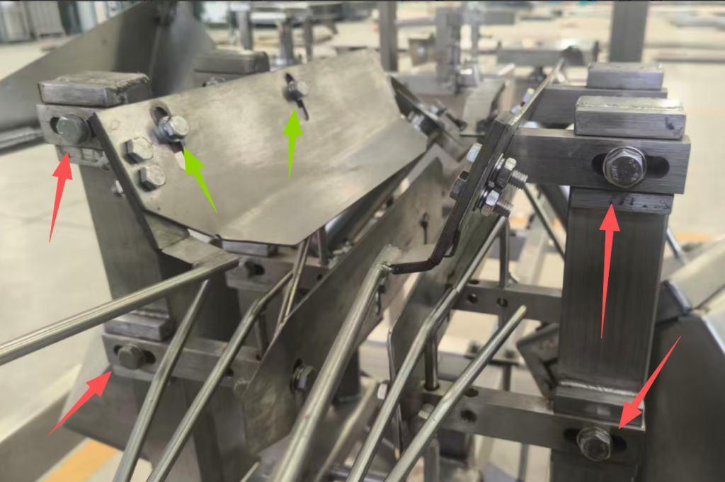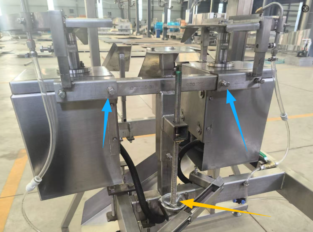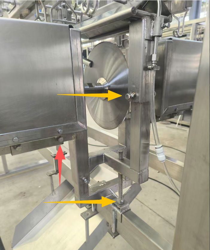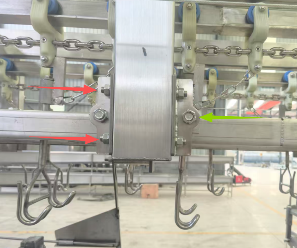 • Loosen the bolts to adjust the support plate vertically according to carcass size; tighten the bolts after adjustment.