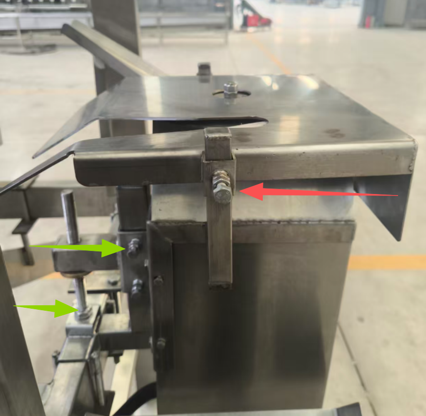 • Loosen the bolt to adjust the lateral distance of the guide rail; tighten the nut to fix after adjustment.