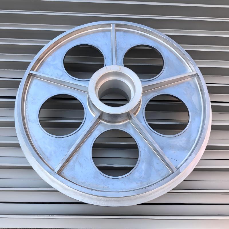 This is a sprocket center hub specially designed for poultry slaughtering production lines. It is manufactured as a single piece from high-strength cast aluminum and is available in three standard outer diameter specifications: 285mm, 385mm, and 485mm.