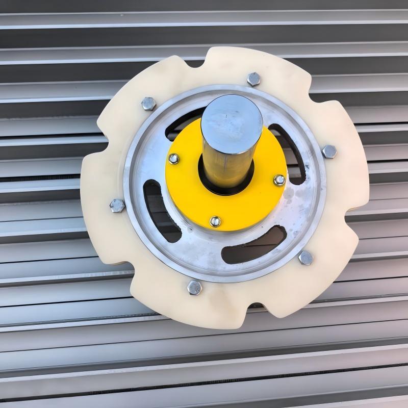 This is a sprocket center hub specially designed for poultry slaughtering production lines. It is manufactured as a single piece from high-strength cast aluminum and is available in three standard outer diameter specifications: 285mm, 385mm, and 485mm. This product is a pure metal inner core, with the outer ring designed for tightly fitting a nylon gear ring. It serves as the core foundational component for the drive unit of slaughter line overhead conveyor systems.