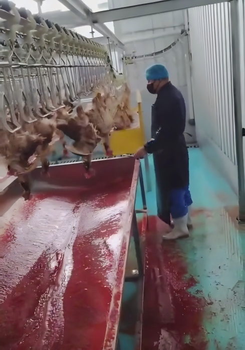 The gentle conveyance mechanism minimizes carcass shaking, ensuring complete exsanguination for better meat color, texture, and shelf life.