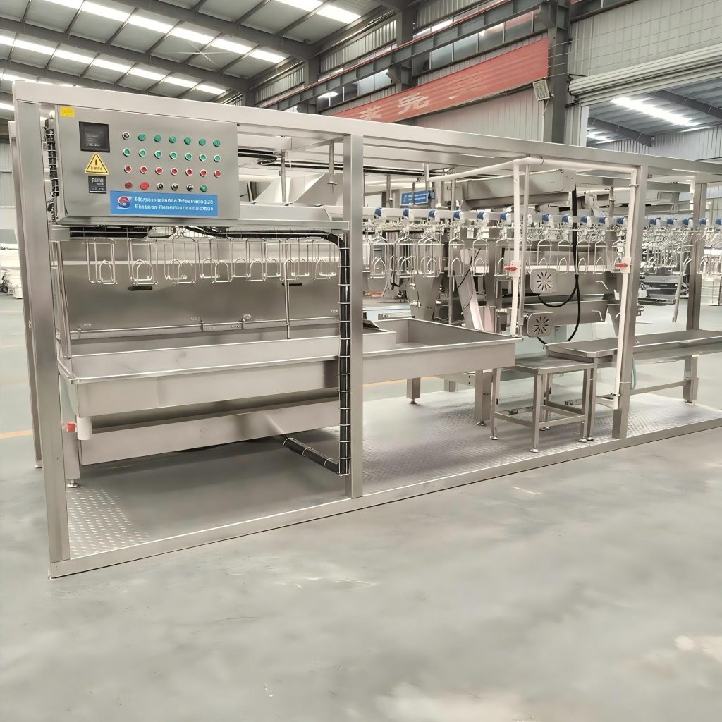 Available in overhead rail or shackle configurations, the modular design allows easy scalability and adaptation for poultry, sheep, or cattle processing.