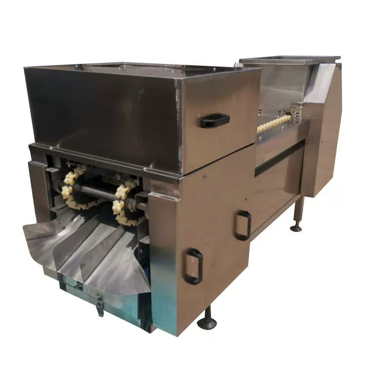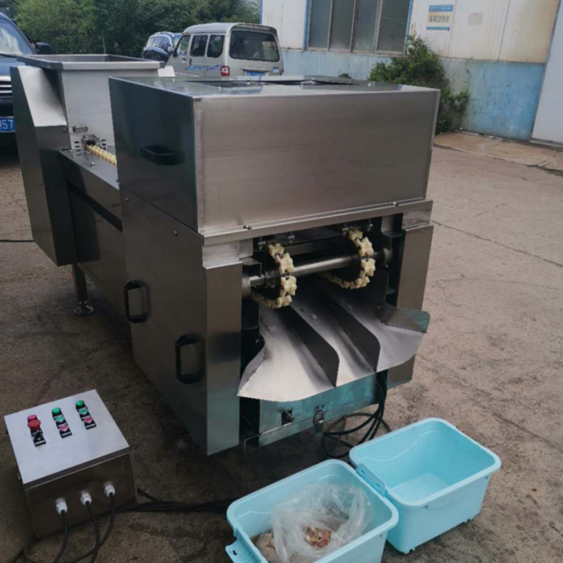 The core function of this equipment is to strip away moisture carried by the carcasses during transit from the chiller. The workflow begins as carcasses enter the rotating drum through an inlet hopper or slide. Inside the drum, a series of spiral vanes or augers, set at a precise pitch, gently propel the carcasses forward as the drum rotates. This mechanical tumbling action ensures that water trapped in the body cavity and skin folds is released and directed into the collection trough below for drainage. This process solves the critical problem of weight inconsistency and potential bacterial growth caused by excess moisture, ensuring the carcasses are perfectly prepared for subsequent grading, weighing, and packaging stages.