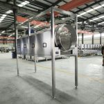 The Carcass Water Dripping Machine is a specialized automated unit essential for moisture management within a poultry processing line. Primarily utilized after the spiral pre-chilling stage, this machine is designed to effectively separate excess water from the bird’s surface and internal cavity. Its structure consists of a robust frame, a rotating dripping drum, an inspection door, and a centralized water collection trough. Engineered with industrial hygiene and efficiency in mind, it provides a seamless mechanical alternative to labor-intensive manual dripping, ensuring a continuous and synchronized production flow in modern slaughtering facilities.