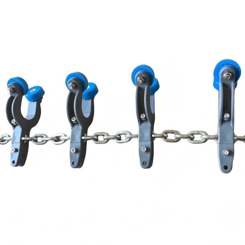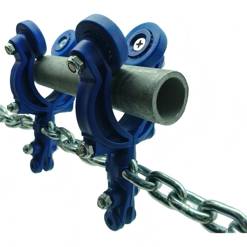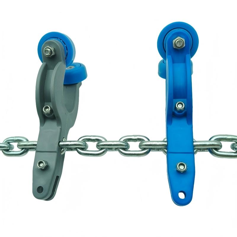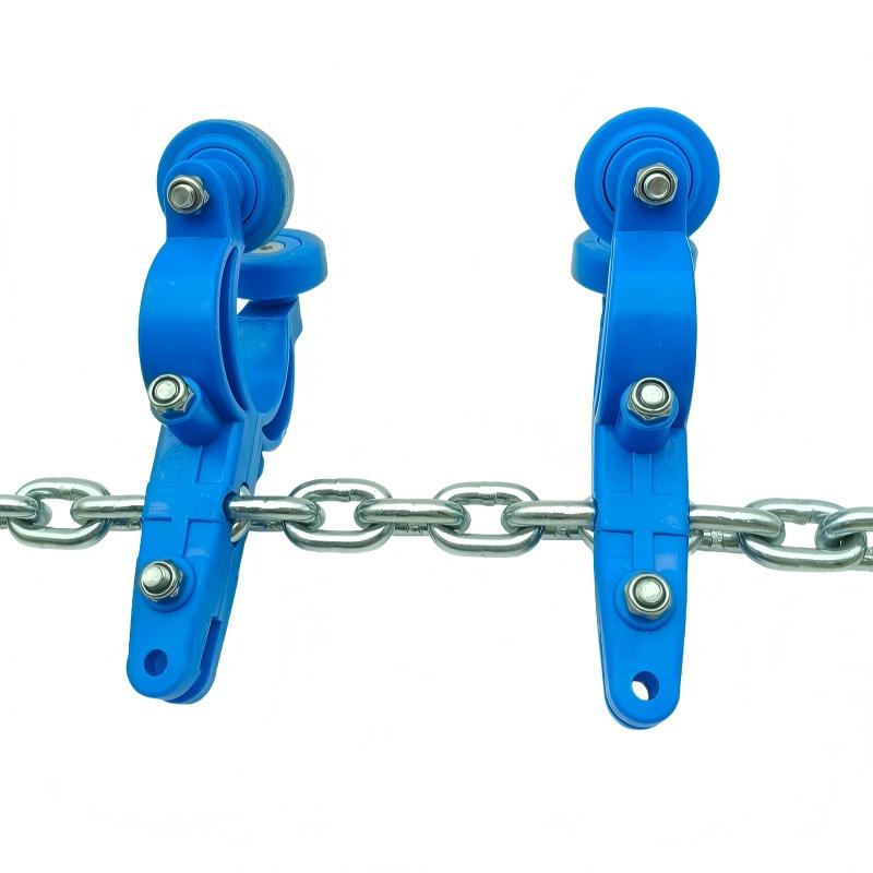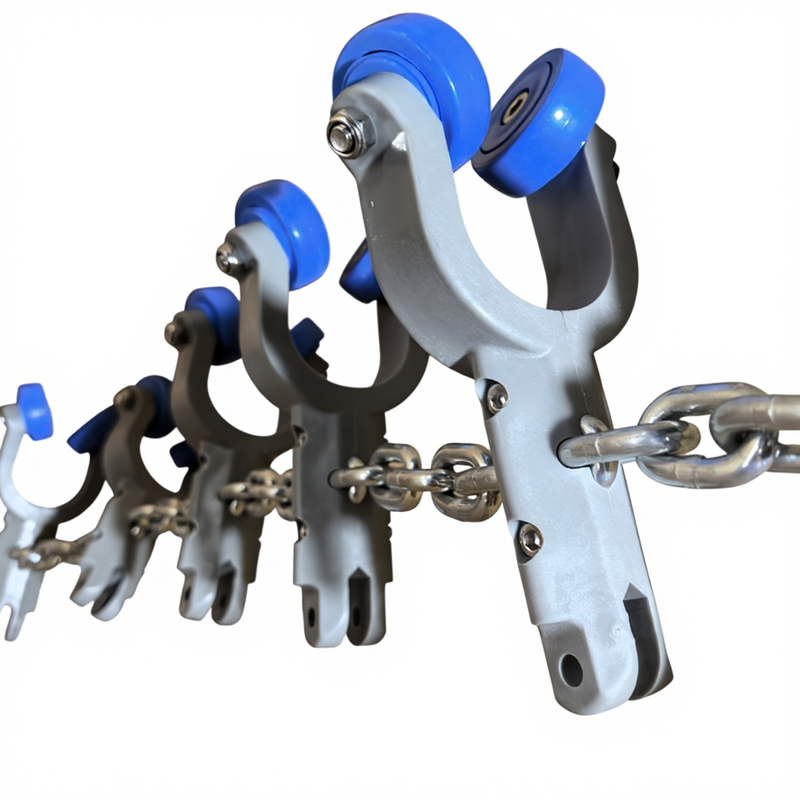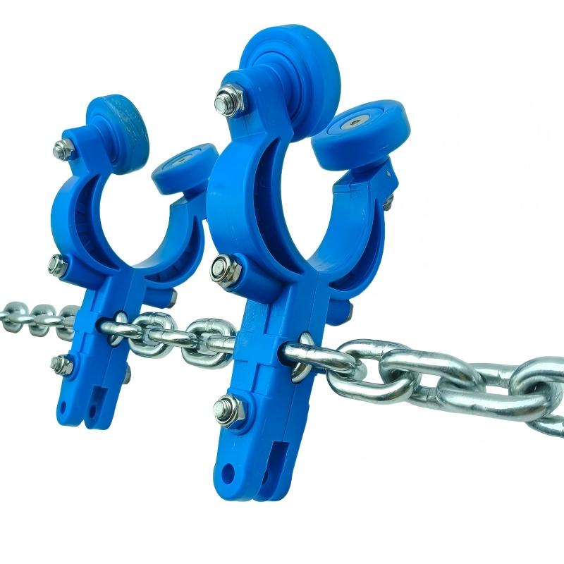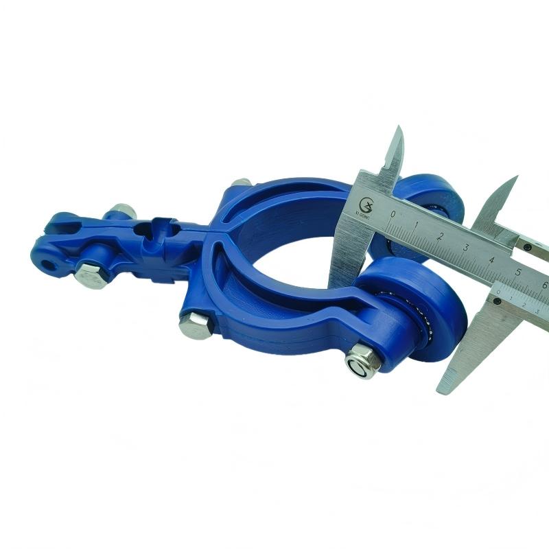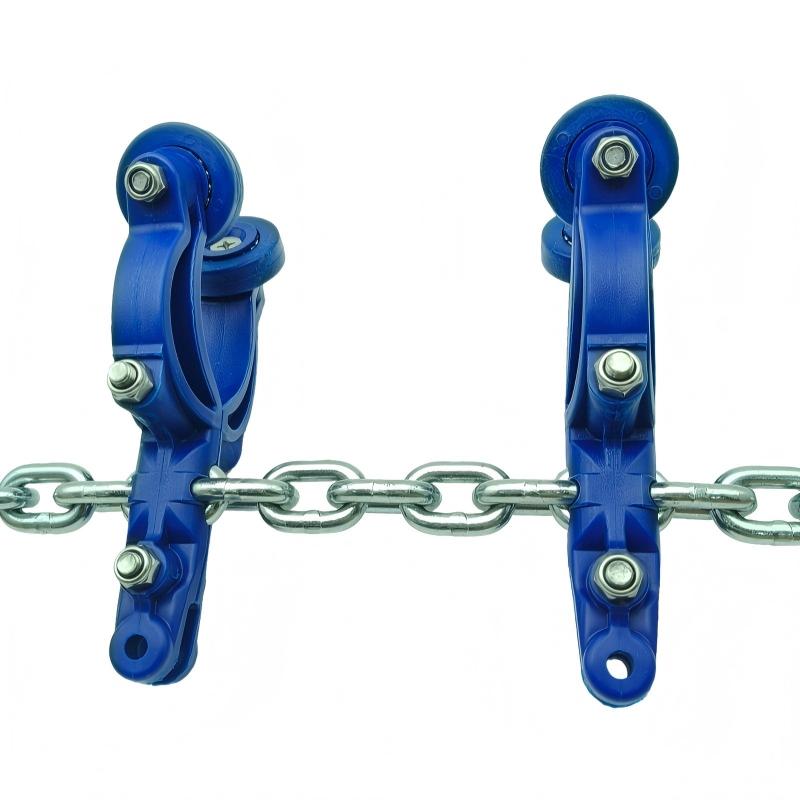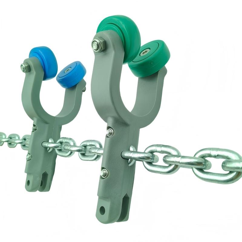 - Key Difference from T-Type Saddles: Unlike T-type saddles, which are primarily used for T-shaped steel rails or flat steel rails, this product is optimized for pipe rail systems. T-type saddles typically rely on rollers or sliders to move along specific grooves or planes of T-shaped rails, whereas this saddle is designed to closely fit the curved surface of pipe rails, with specialized contact methods and force distribution. The two are generally not directly interchangeable in terms of rail interfaces, installation methods, and compatible chain systems.
