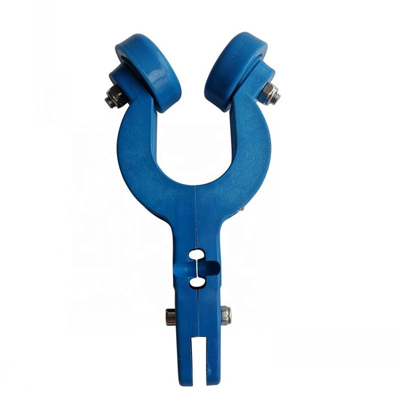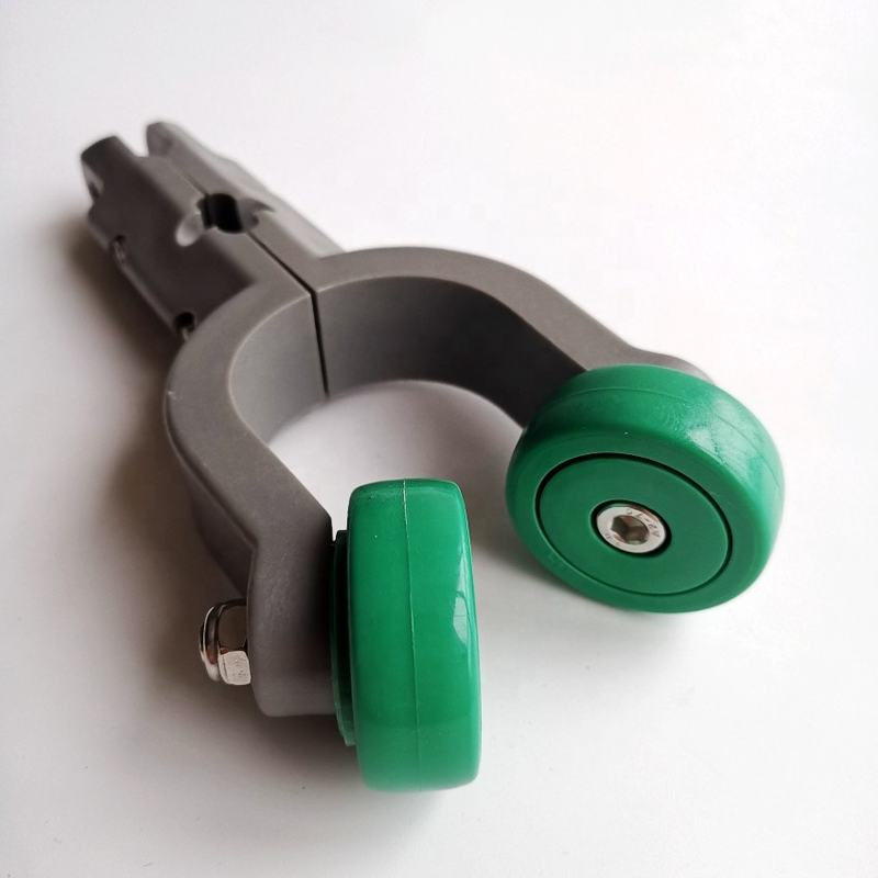 A key moving accessory designed for modern poultry slaughter conveyor lines. This product is a nylon saddle (also called a conveyance trolley) installed on round or square pipe rails and connected in series via galvanized drive chains. It is responsible for carrying hook or hanger assemblies, enabling smooth, low-noise, and efficient transfer of poultry carcasses between various stations along the production line.