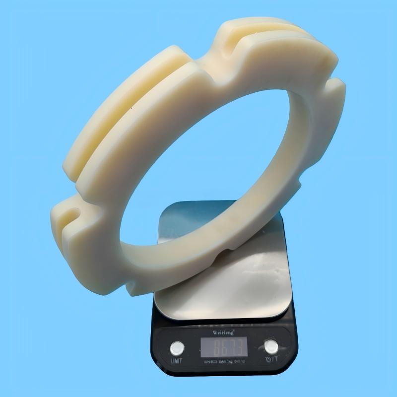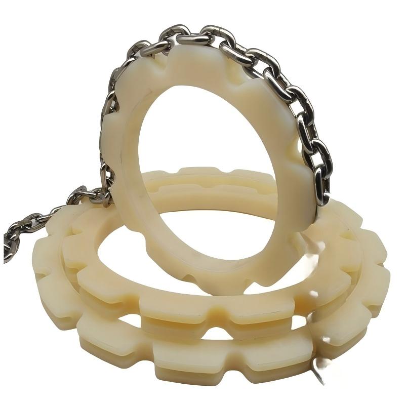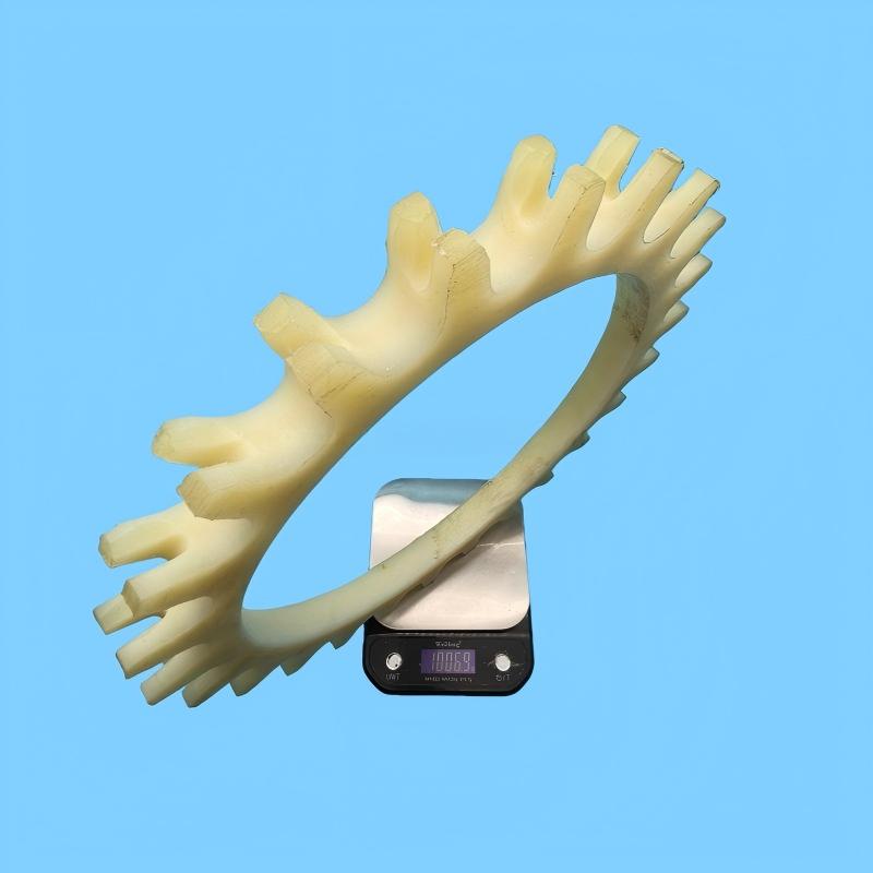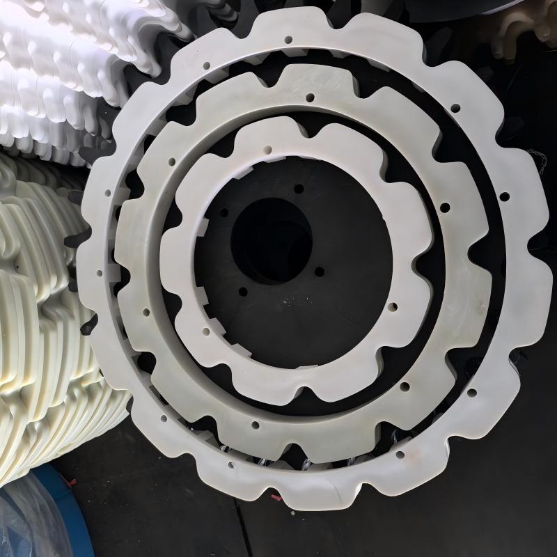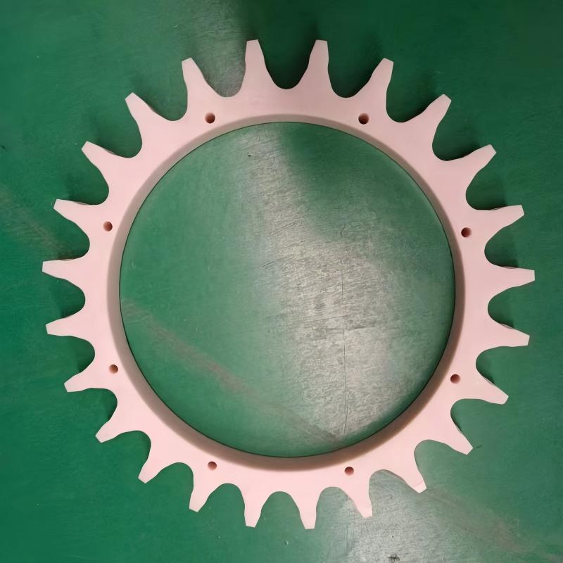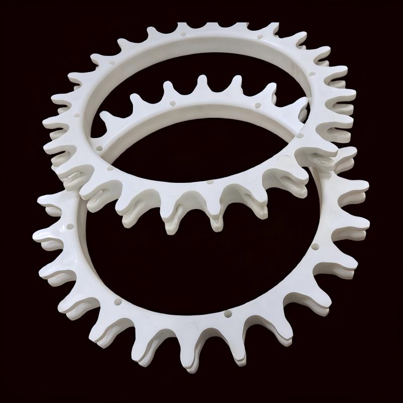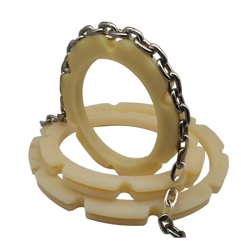 A nylon gear ring component designed for rotary guide wheels in poultry slaughter overhead lines. It can be quickly installed on the outside of existing metal guide wheels to upgrade them into drive wheels, enabling smooth turning and power transmission.