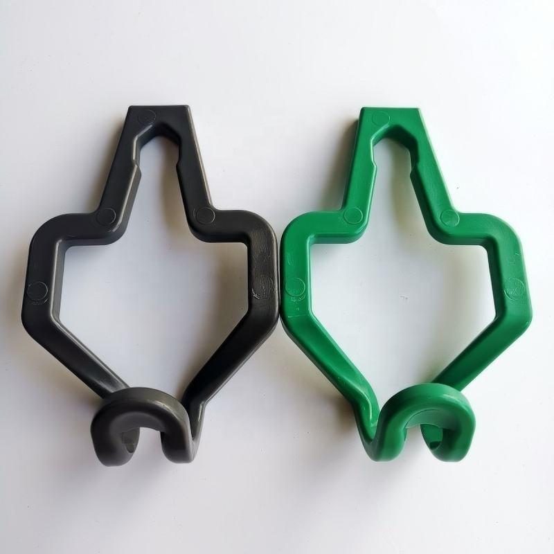 A quick-release plastic shackle specially designed for rotary cutting fixtures in poultry slaughter lines. Made from high-strength POM/PA66 engineering plastic, it is mounted at the end of the rotary fixture to quickly release and transfer poultry carcasses to the next process after cutting is completed.