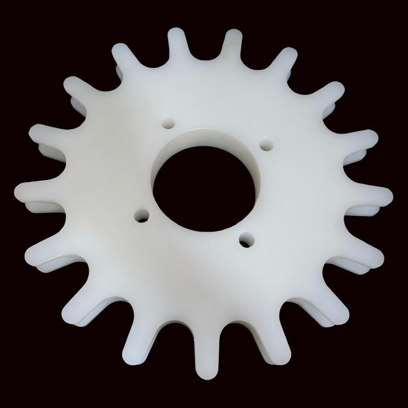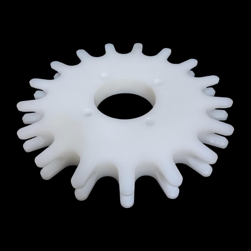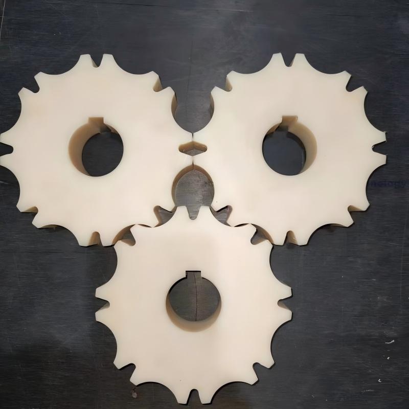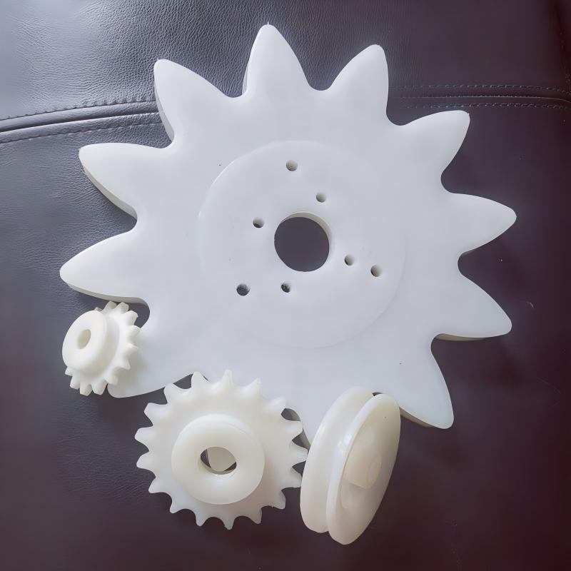 Nylon plastic sprocket components specially designed for poultry slaughter overhead conveyor lines, including drive sprocketsidler sprockets, and transmission sprockets. All are made from high-strength PA6/PA66 nylon, serving as replacements for traditional metal sprockets.