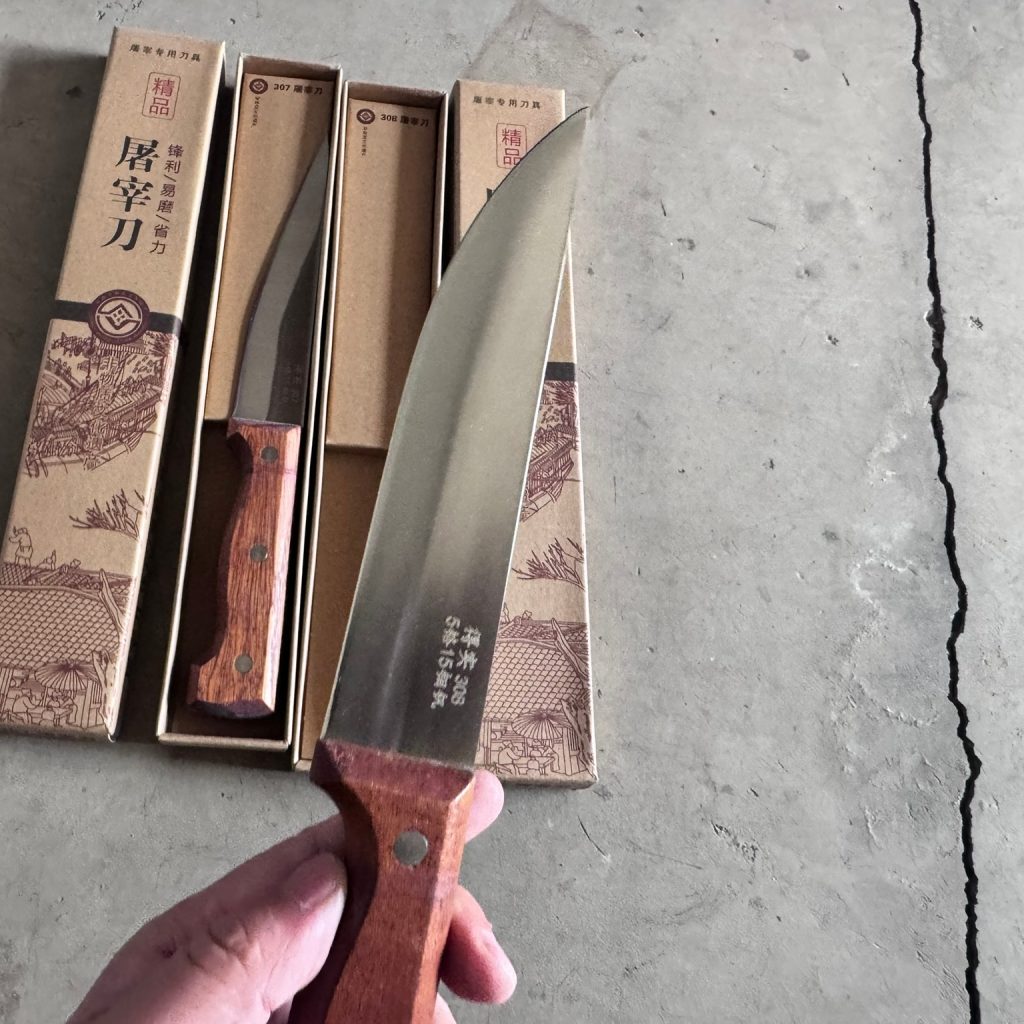 1. Customization Service: Custom knife dimensions and materials available for specific slaughter processes (e.g., Halal, organic slaughter).