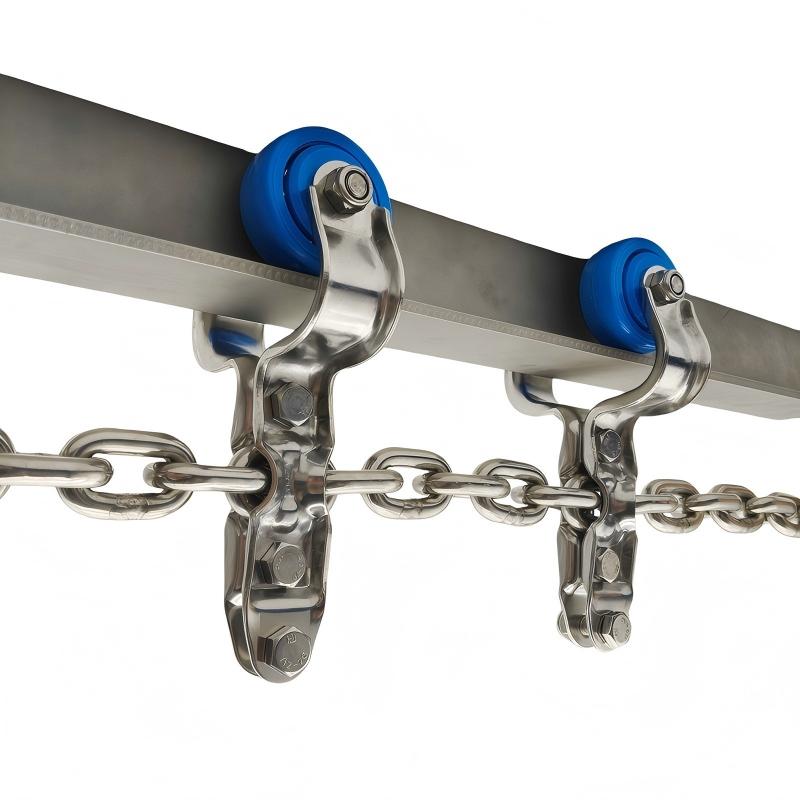 • Exceptional Load Capacity: Easily handles single-point loads far exceeding those of nylon carriages, suitable for large poultry or high-density processing lines.