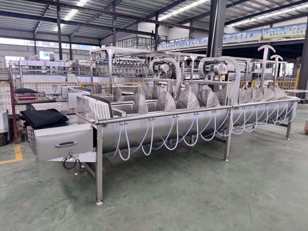 Демонстрация опционального спирального охладителя-моечного агрегата для побочных продуктов (куриных потрохов, лапок и т.п.)