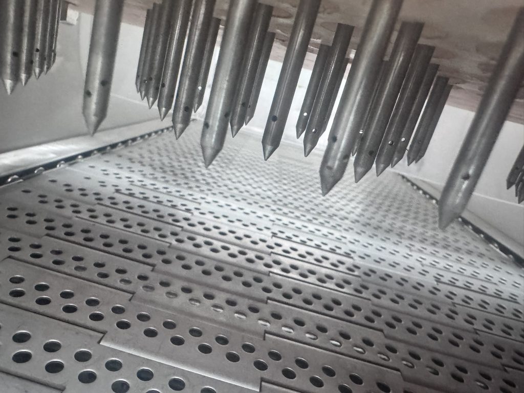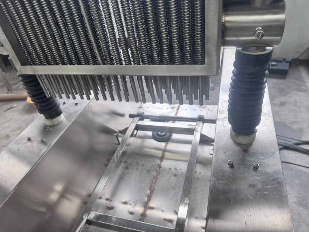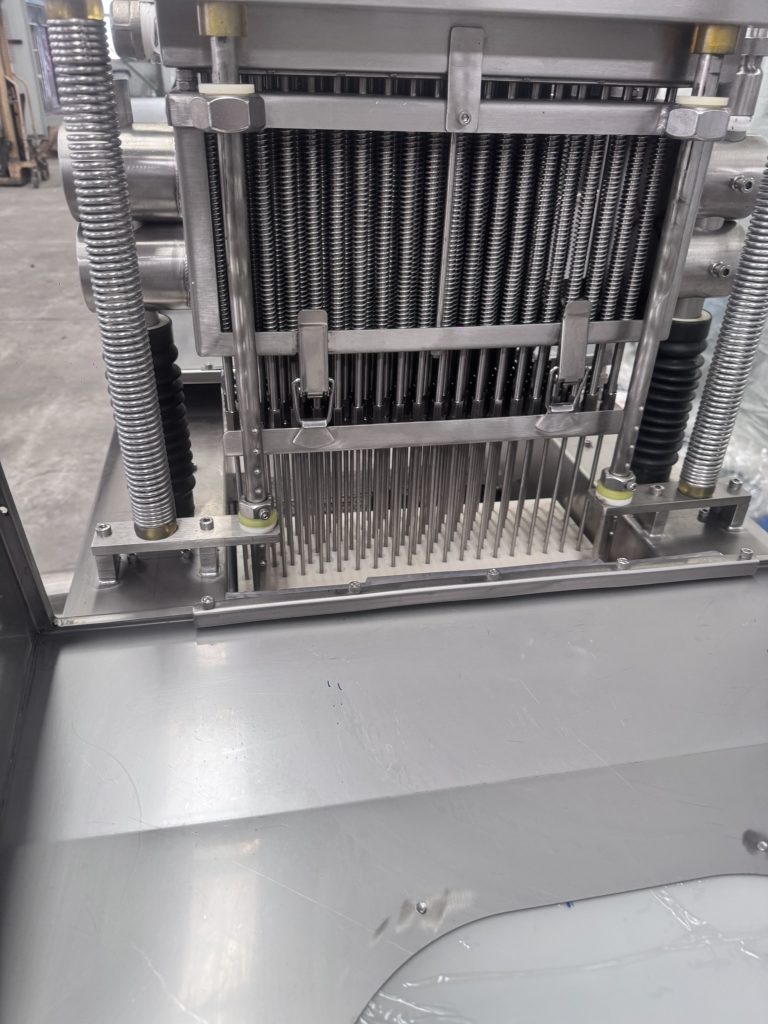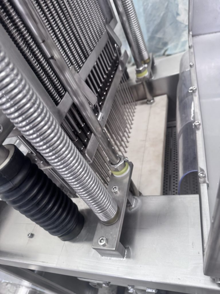 Синхронизация:Передовое оборудование обеспечивает впрыск только при проникновении игл и его остановку при их извлечении, сокращая потери маринадного раствора и его скопление на поверхности.