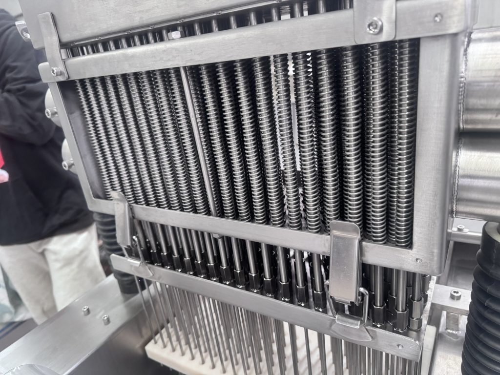 Многоигольная синхронная высокочастотная инъекция с регулируемой глубиной проникновения обеспечивает равномерное распределение маринадного раствора без «мертвых зон».