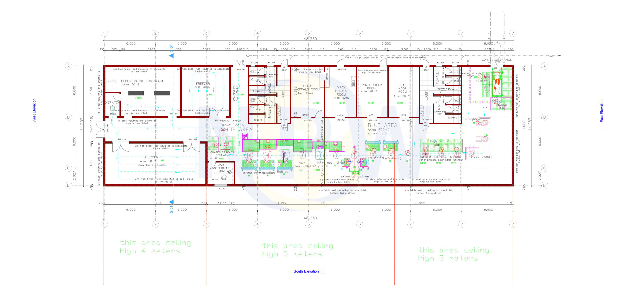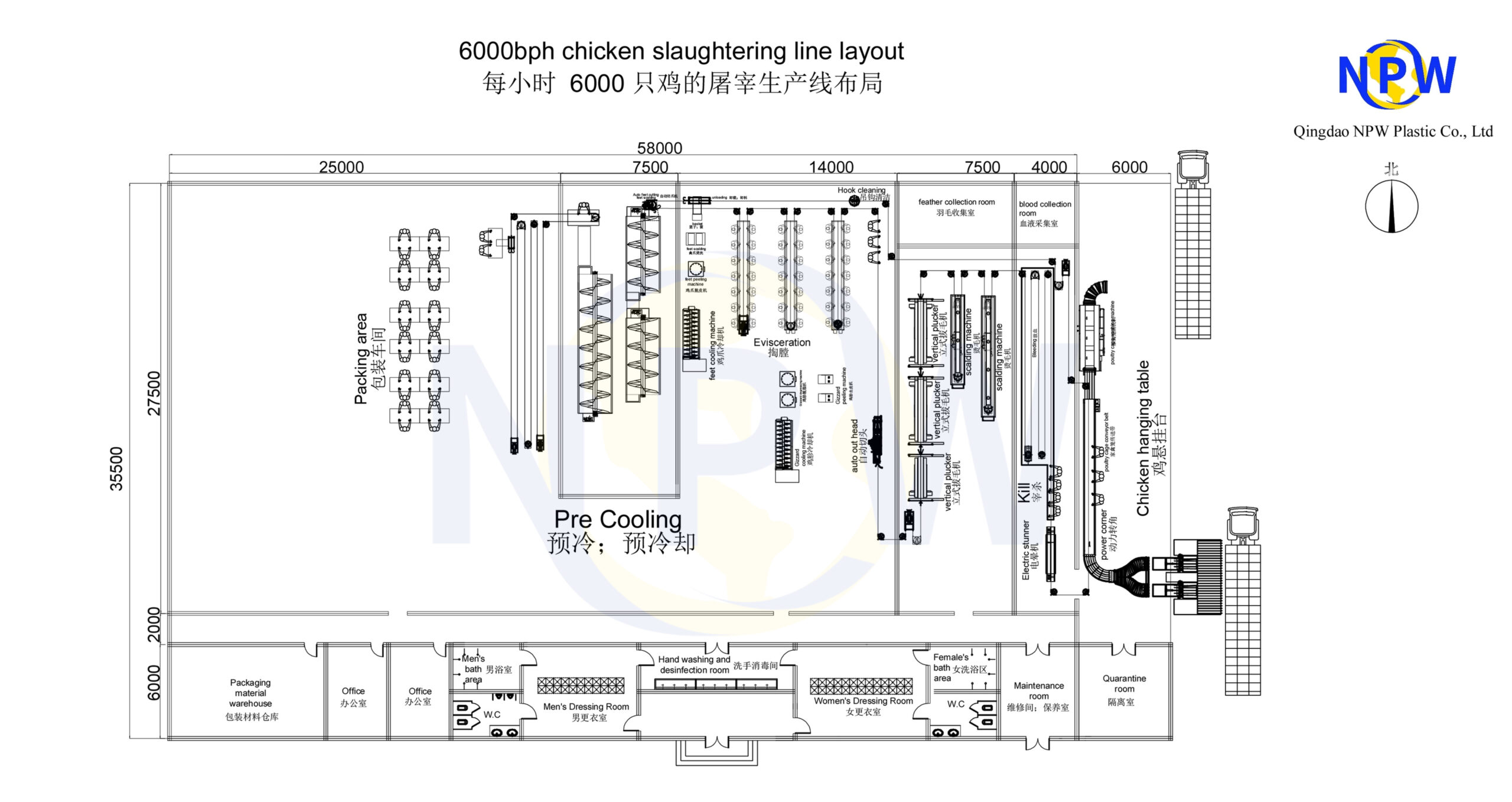 - Process Flow Design: We detail the complete process flow diagram, from live animal receiving, stunning, slaughtering, initial processing, all the way to final packaging. Our design ensures the shortest possible movement lines, strict separation of personnel and material flows, and the complete elimination of cross-contamination.