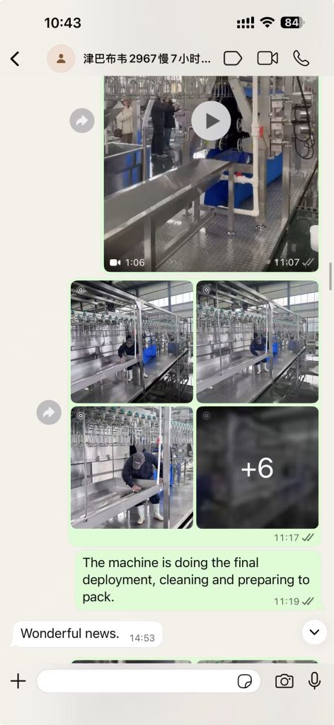 Ta spersonalizowana, kompaktowa linia do uboju o wydajności 500BPH ma dotrzeć do Zimbabwe w ciągu 50 dni. Inżynierowie techniczni NPW zapewnią wsparcie zdalne, a także mogą zorganizować pomoc w zakresie montażu i uruchomienia na miejscu, zgodnie z potrzebami klienta, aby zapewnić sprawne oddanie sprzętu do użytku.